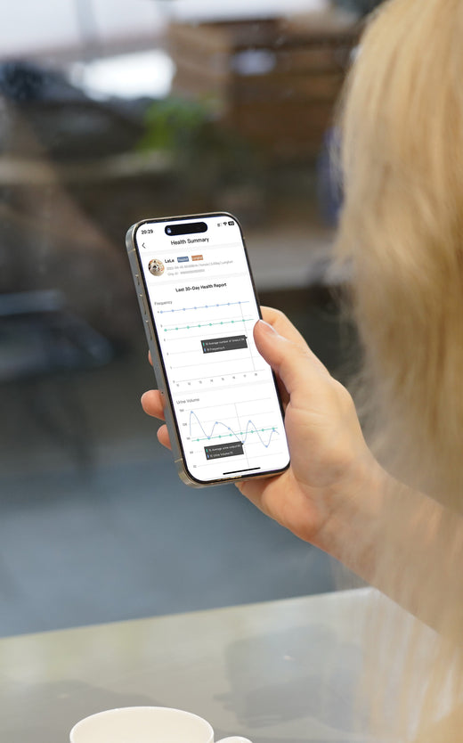 Thanks to Petalas’s water-rinse system and reusable, always-clean litter, every urine sample is pristine for analysis. The system precisely measures and records daily urine volume, automatically generating a detailed daily volume curve right on your phone. This quantitative data empowers you to proactively initiate on-demand urinalysis tests anytime, monitoring subtle shifts that provide vital, early warnings for conditions like feline kidney disease and other serious health issues.